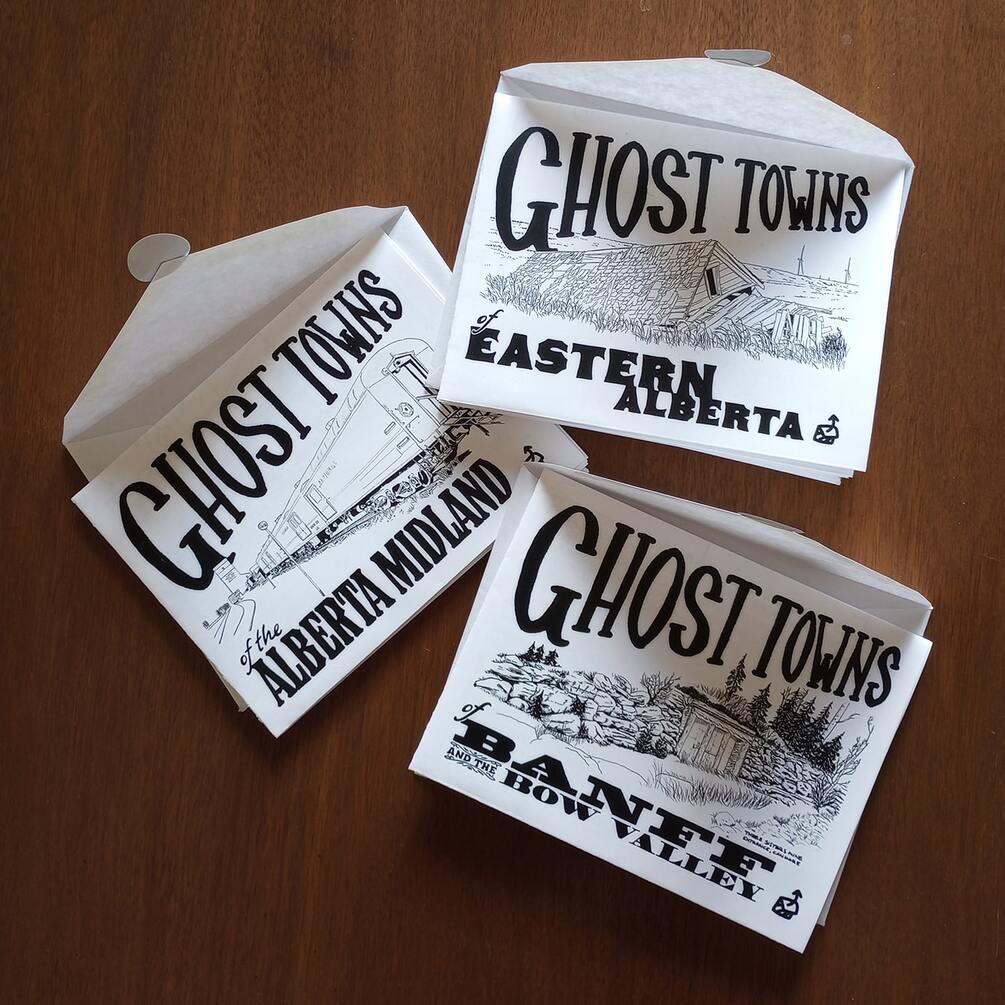 I've been creating zines in the Ghost Towns of Alberta series to show the historical rise and fall of once-prosperous communities throughout the province of Alberta, along with illustrations and even a map you can use to plan your own adventure to see these gems of history.